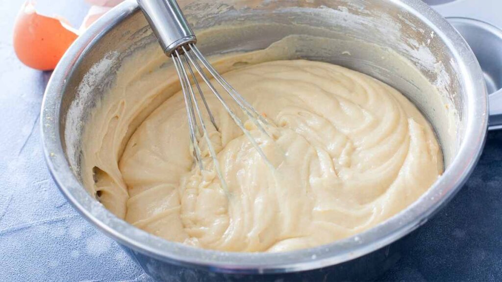 • Versez le mélange liquide dans le bol contenant les ingrédients secs tamisés. Mélangez délicatement jusqu’à ce que tous les ingrédients soient bien incorporés. Veillez à ne pas trop mélanger pour éviter de développer le gluten de la farine.